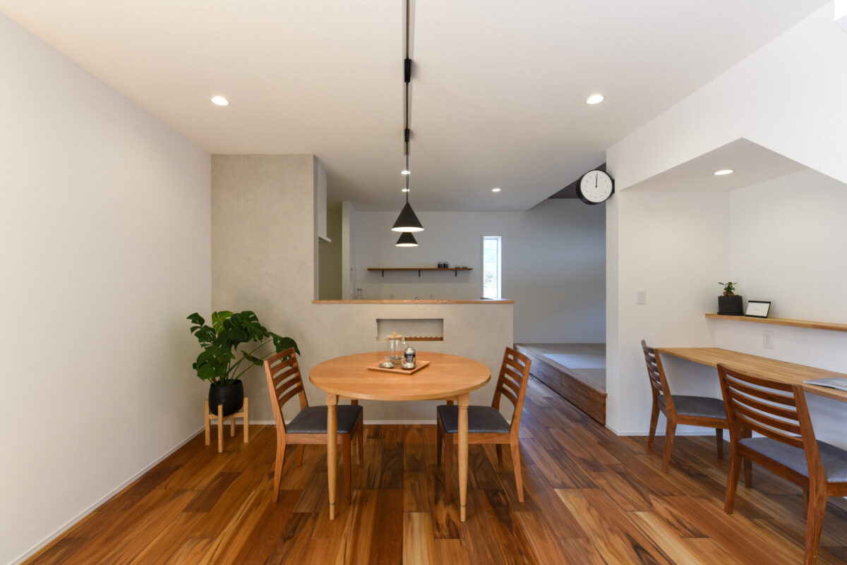 青空が映える、ホワイトを基調としたカリフォルニアスタイルのお家。 シンプルなデザインながらも細部までこだわって空間をお洒落に 使い勝手のよい収納や家事のしやすいランドリースペース 木目調のカウンターとタイルが調和してお洒落な空間になりました。 上部に取り付けた窓から差し込む光で明るい洗面室です。